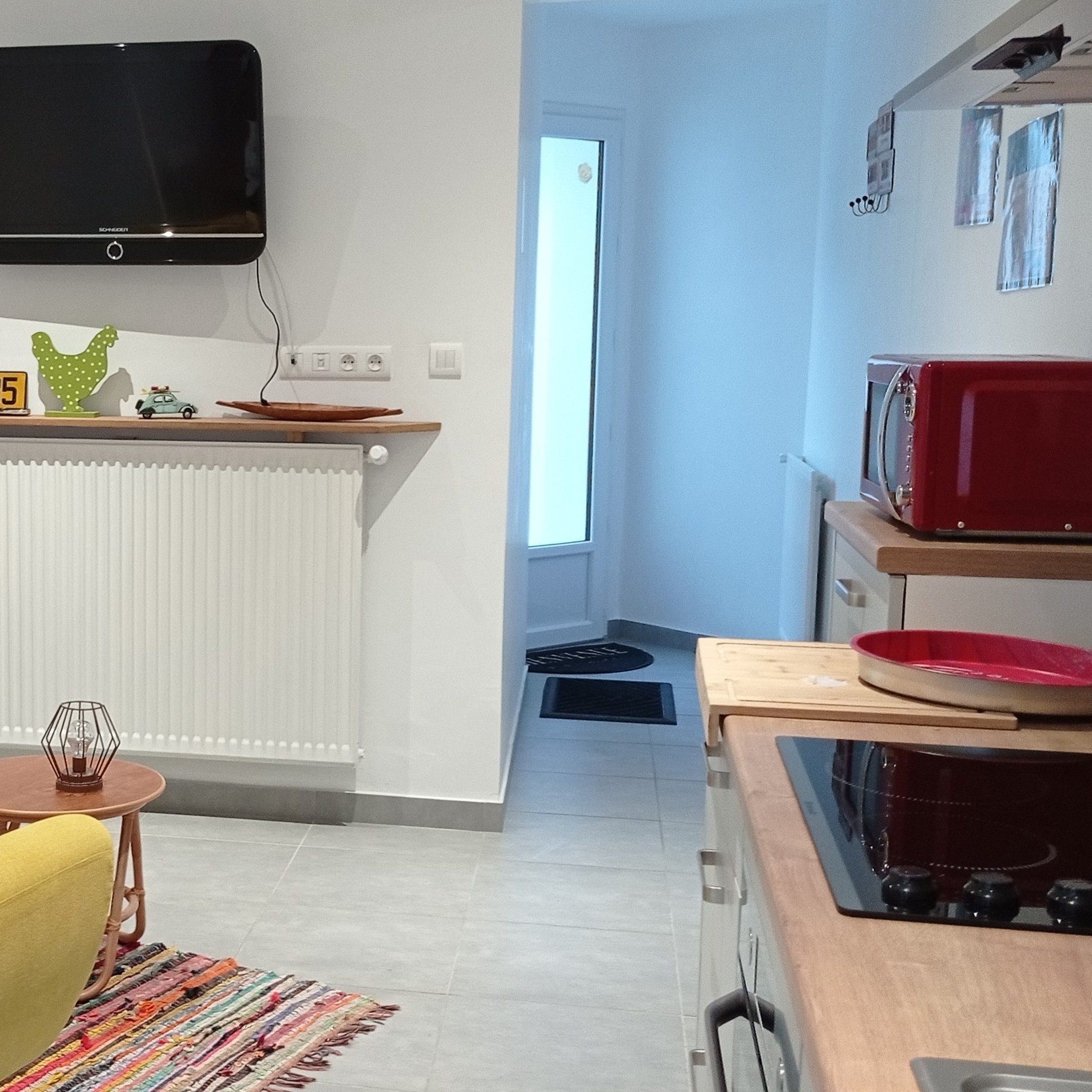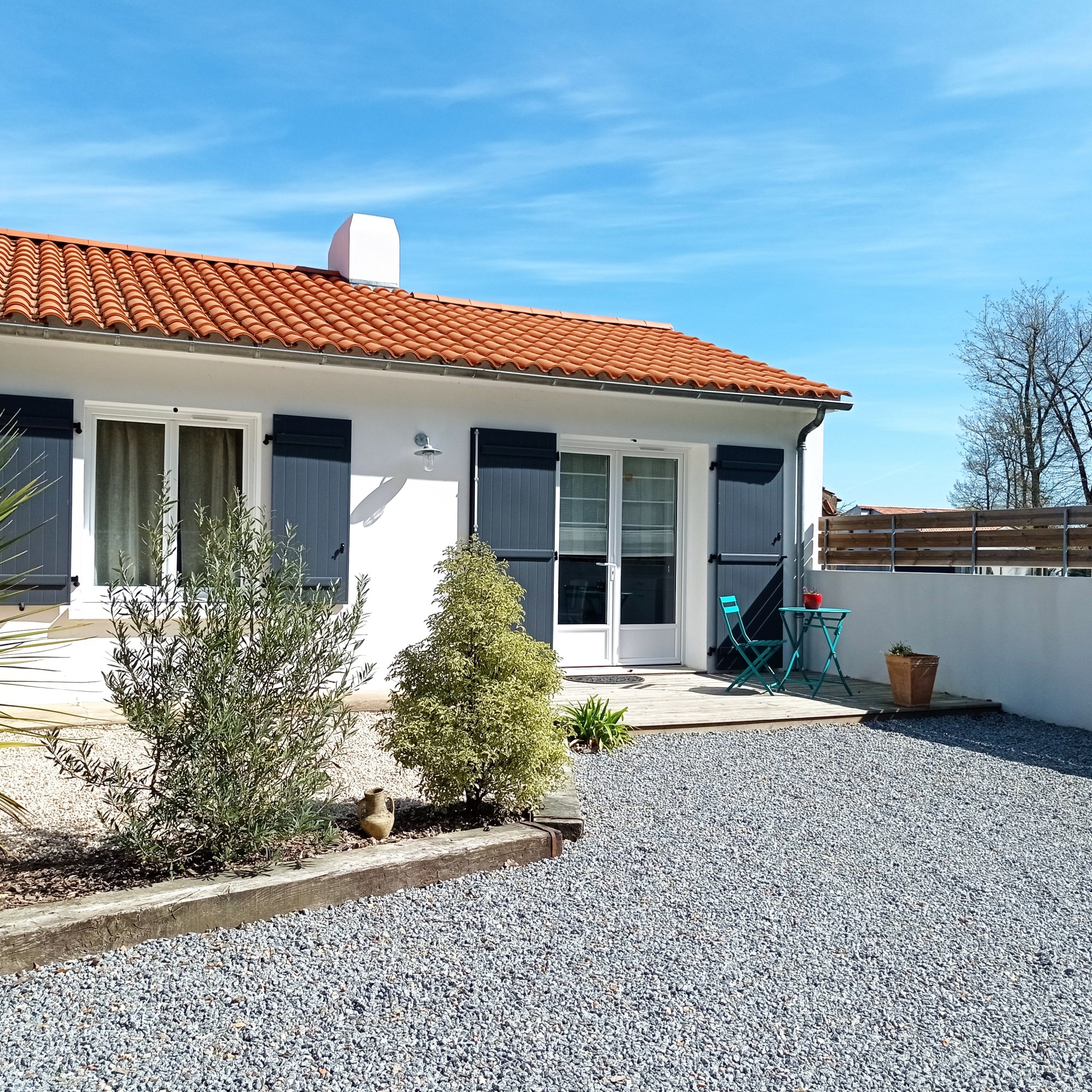 Sur la partie droite de la maison, le gîte de 50 m² accueille 4 personnes. La pièce principale de 20 m² regroupe la cuisine séjour et le coin salon , jeux et livres sont à la disposition des enfants. Dans un décor cocooning, vous retrouverez tout le confort avec des équipements neufs. A l’arrière de la maison, profitez de votre jardin privé, table de jardin, transats et barbecue. Egalement jeux extérieurs pour les jeunes enfants : toboggan draisienne ,bac à sable etc…